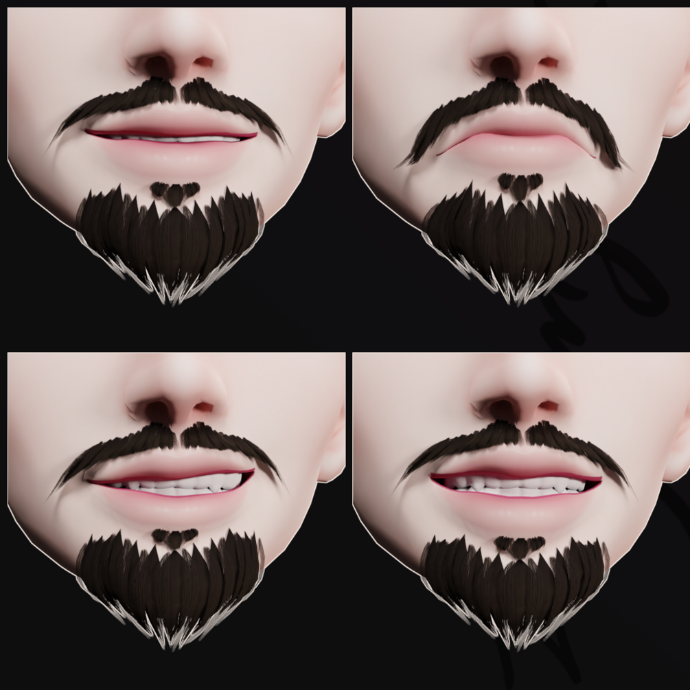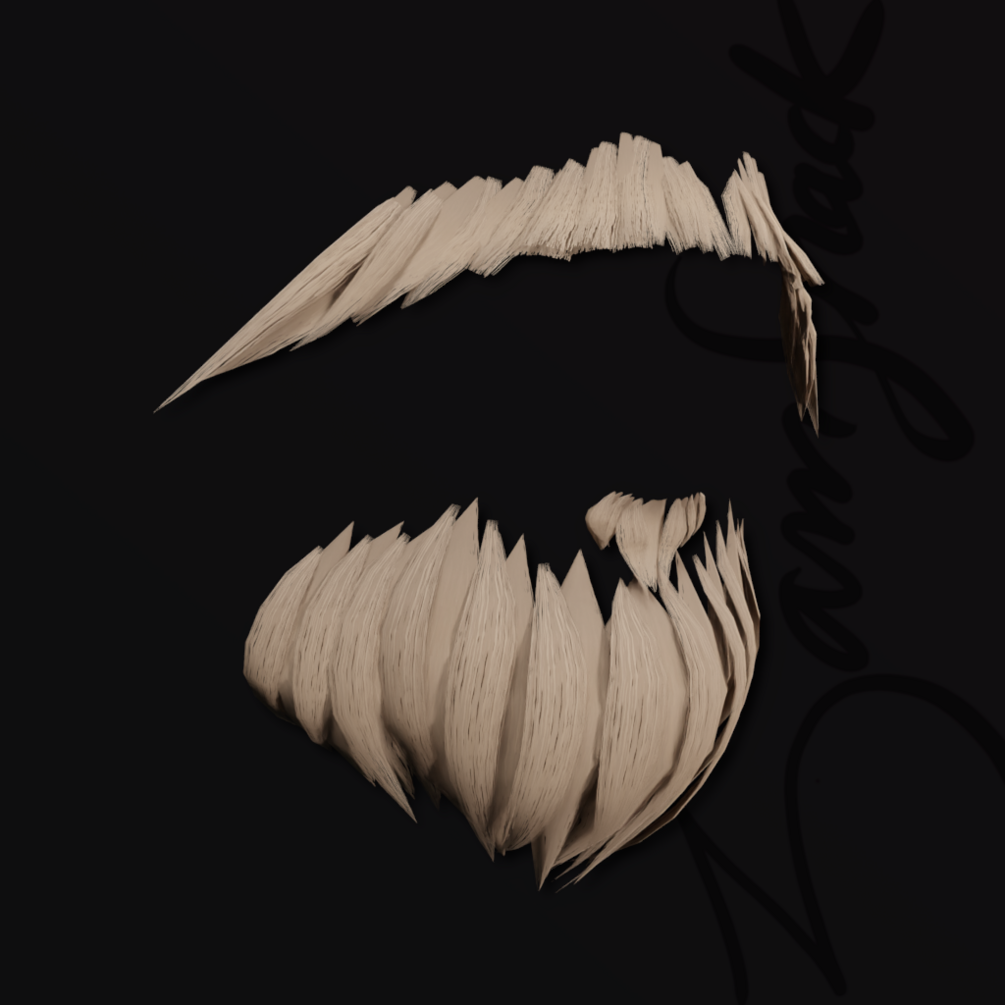 A beard and moustache that can be sculpted for any head in Blender. It comes with blendshapes ready for ZinPia's Dean head.